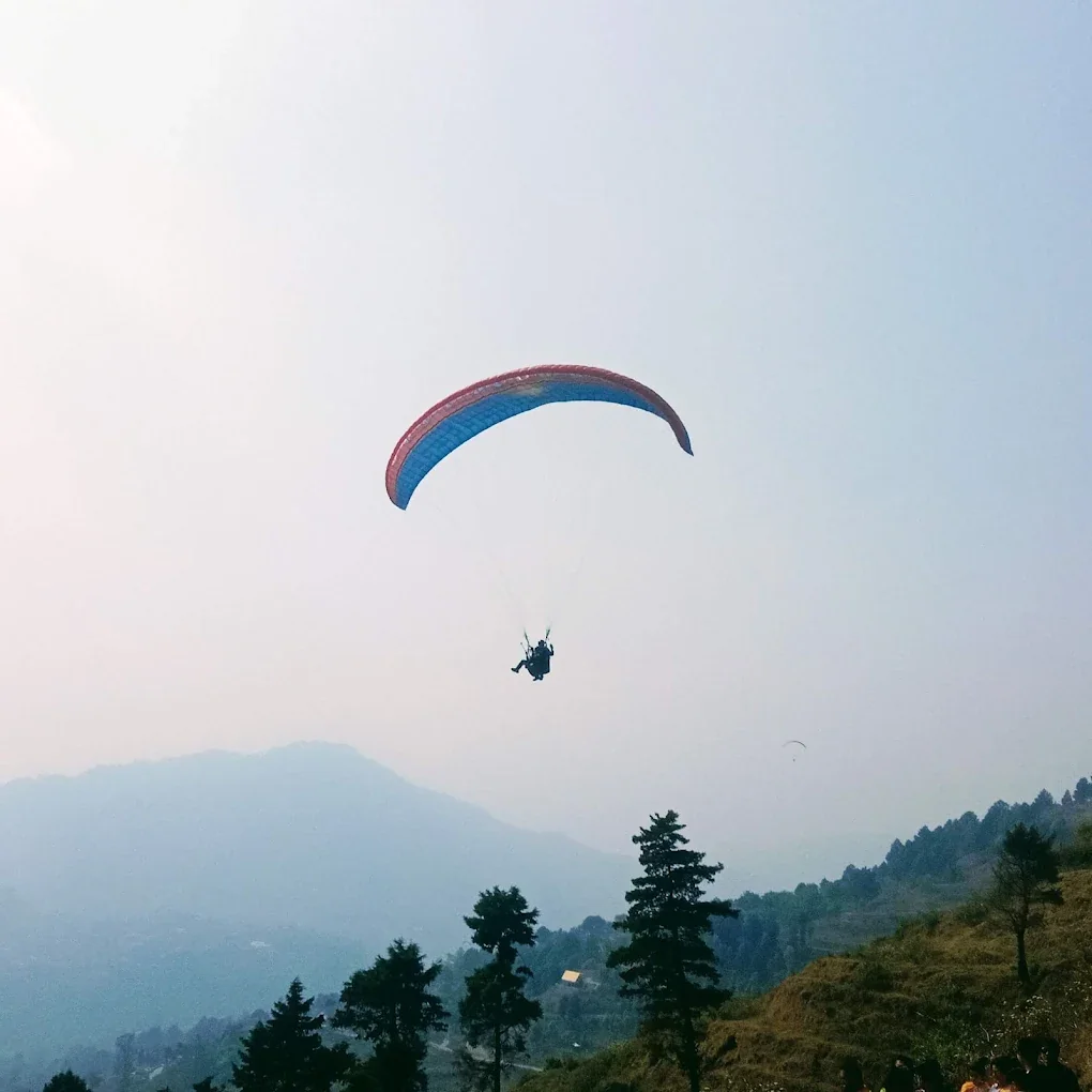 A high-adrenaline paragliding experience near Nainital offering stunning aerial views of Bhimtal Lake — perfect for thrill seekers chasing a 10-minute main-character moment.