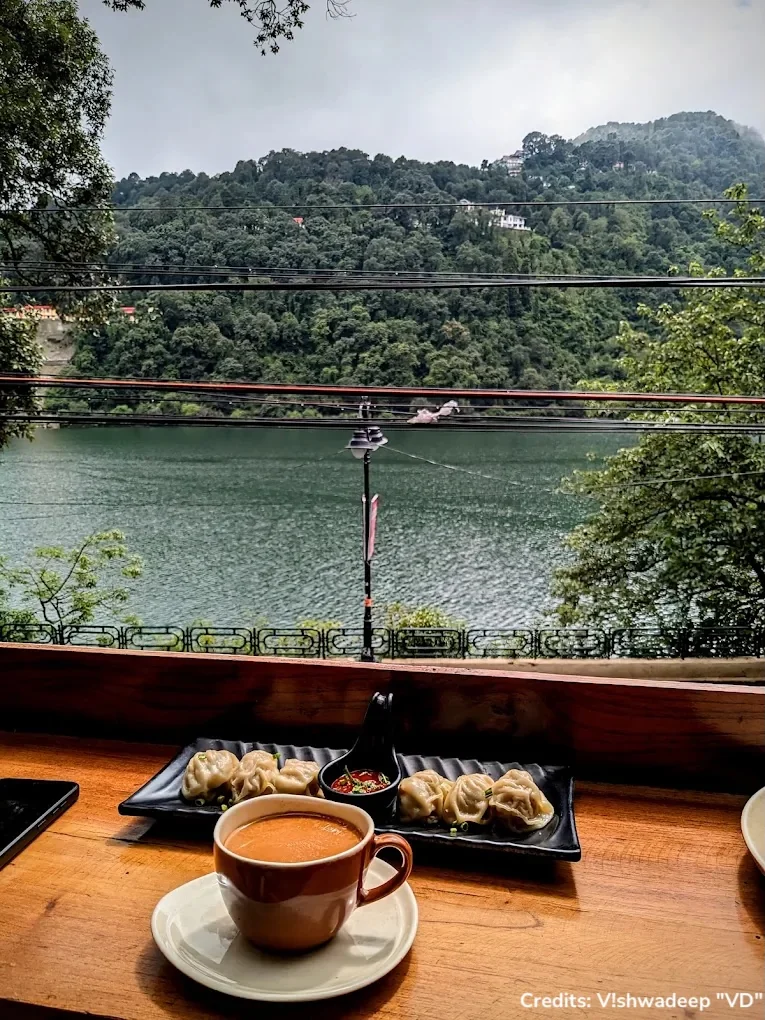 A lakeside café in Nainital with calming views, cozy seating, and comfort drinks — perfect for slow conversations, window seats, and watching the town float by.