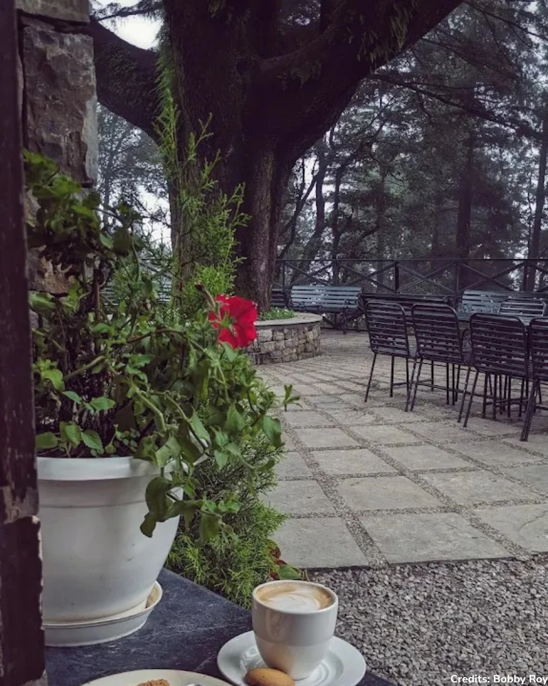 A rustic restaurant in Landour surrounded by deodar trees, offering a calm, scenic dining experience away from the chaos.