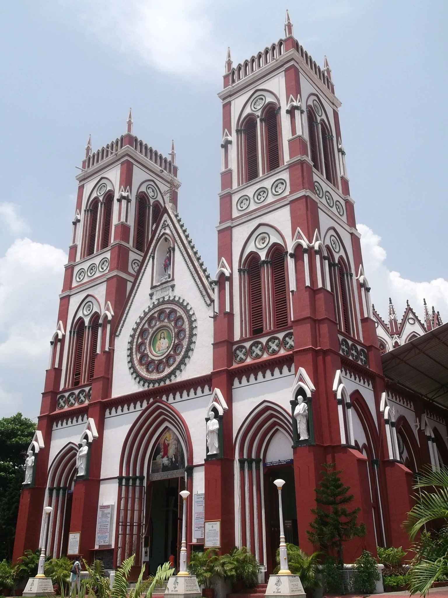 Pondy’s iconic red-and-white Gothic church, famous for its towering facade and stunning stained-glass windows depicting the life of Christ.